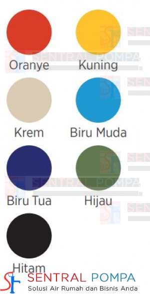 Orange , Kuning , Krem , Biru muda , Biru Tua , Hijau , Hitam