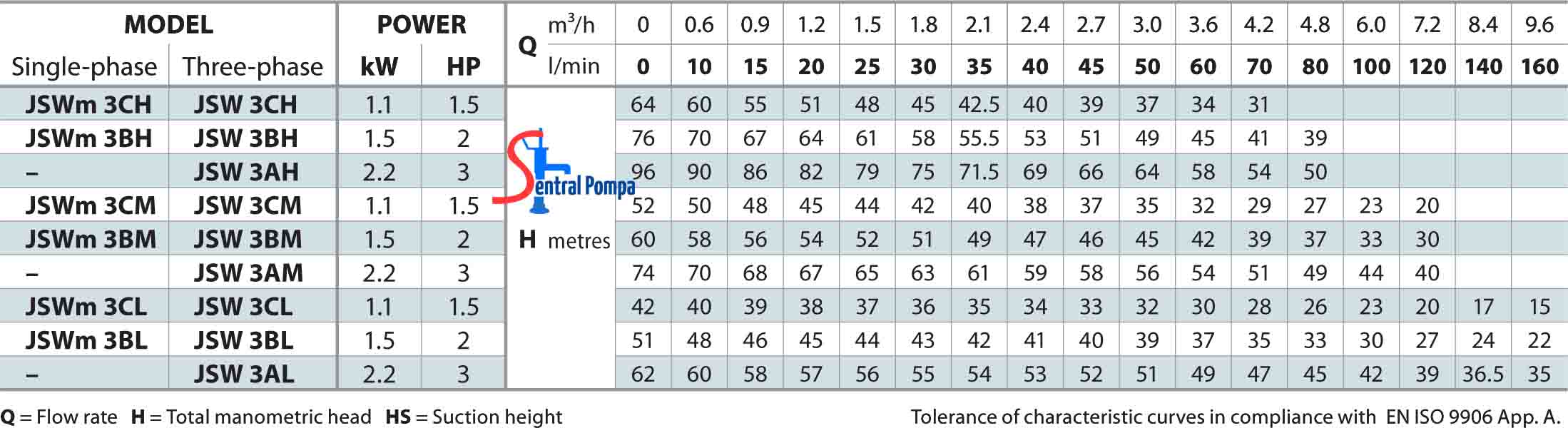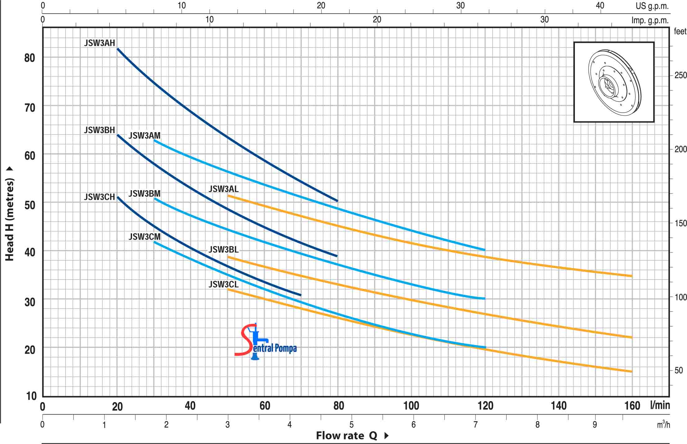 Pompa Semijet 1.5 kW 1 phase JSWm3BM | SENTRAL POMPA - solusi pompa air rumah dan bisnis anda