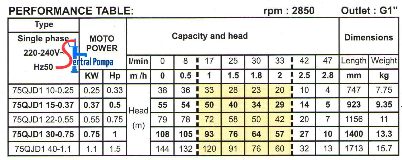 Pompa Submersible 3 Inch 1/2 HP 75 QJD115-0.37 | SENTRAL POMPA - solusi pompa air rumah dan bisnis anda