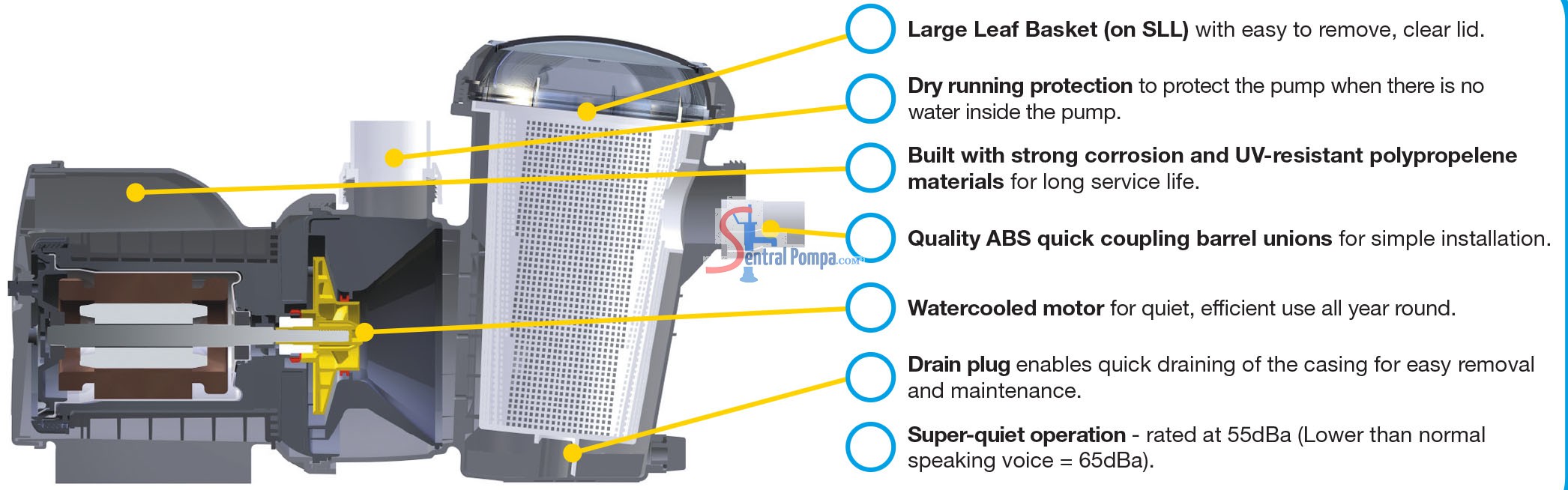 POMPA KOLAM RENANG SILENSOR SLS200 | SENTRAL POMPA - solusi pompa air rumah dan bisnis anda