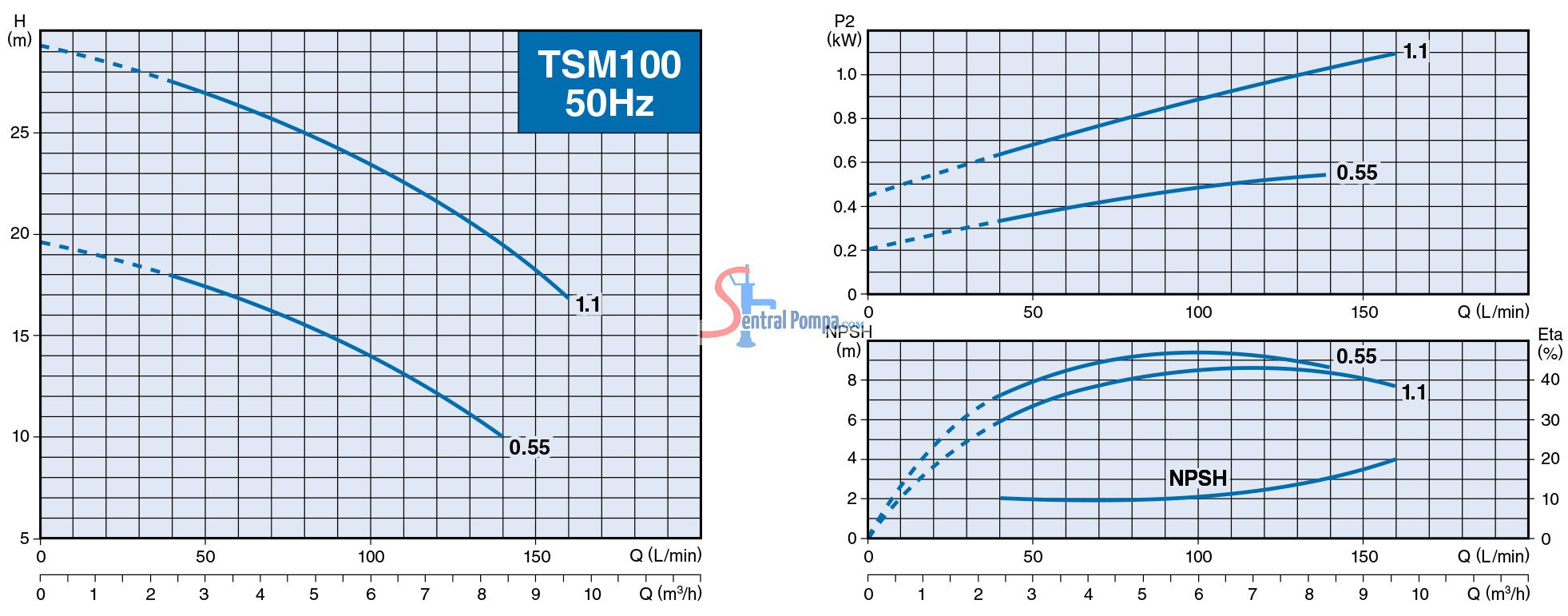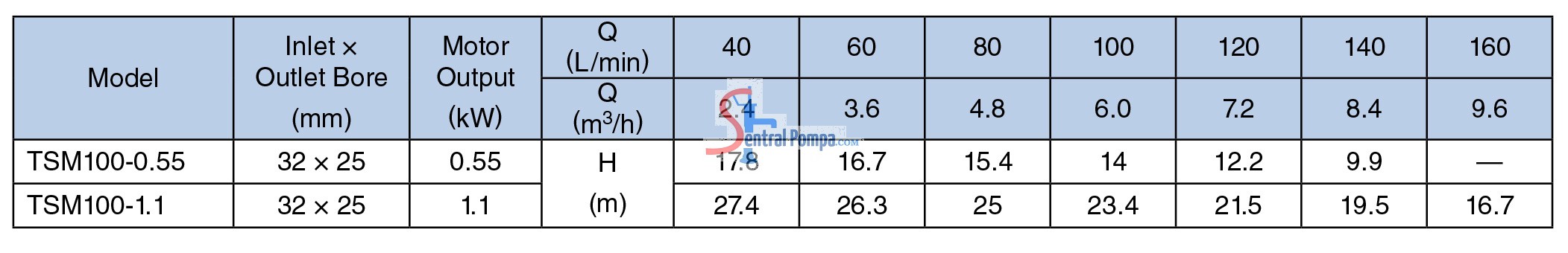 Horizontal Stainless Steel Single Stage Centrifugal Pump 1.5kW TSM100-1.1 1.5 HP 1Phase | SENTRAL POMPA - solusi pompa air rumah dan bisnis anda
