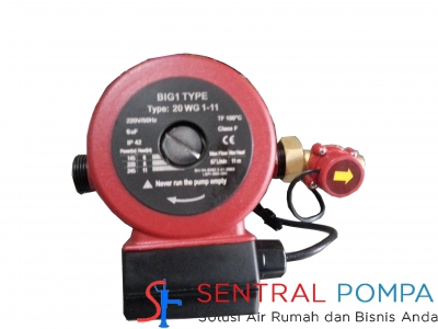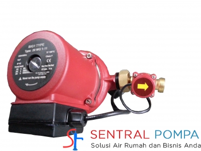 Pompa Mini Compact Booster merk Big 1. Pompa Booster ini dapat digunakan untuk mendorong air dari kran ke water heater. Pompa Booster ini juga dapat digunakan untuk pendorong air dari tangki penampungan ke kran air (maksimal 2 kran air).